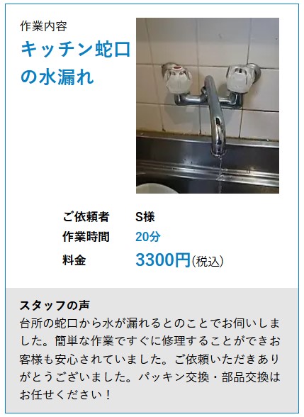 木津川市で対応可能なキッチン(台所)の修理サービスとなります。その他のトラブルはお気軽に受付スタッフまでご相談ください。